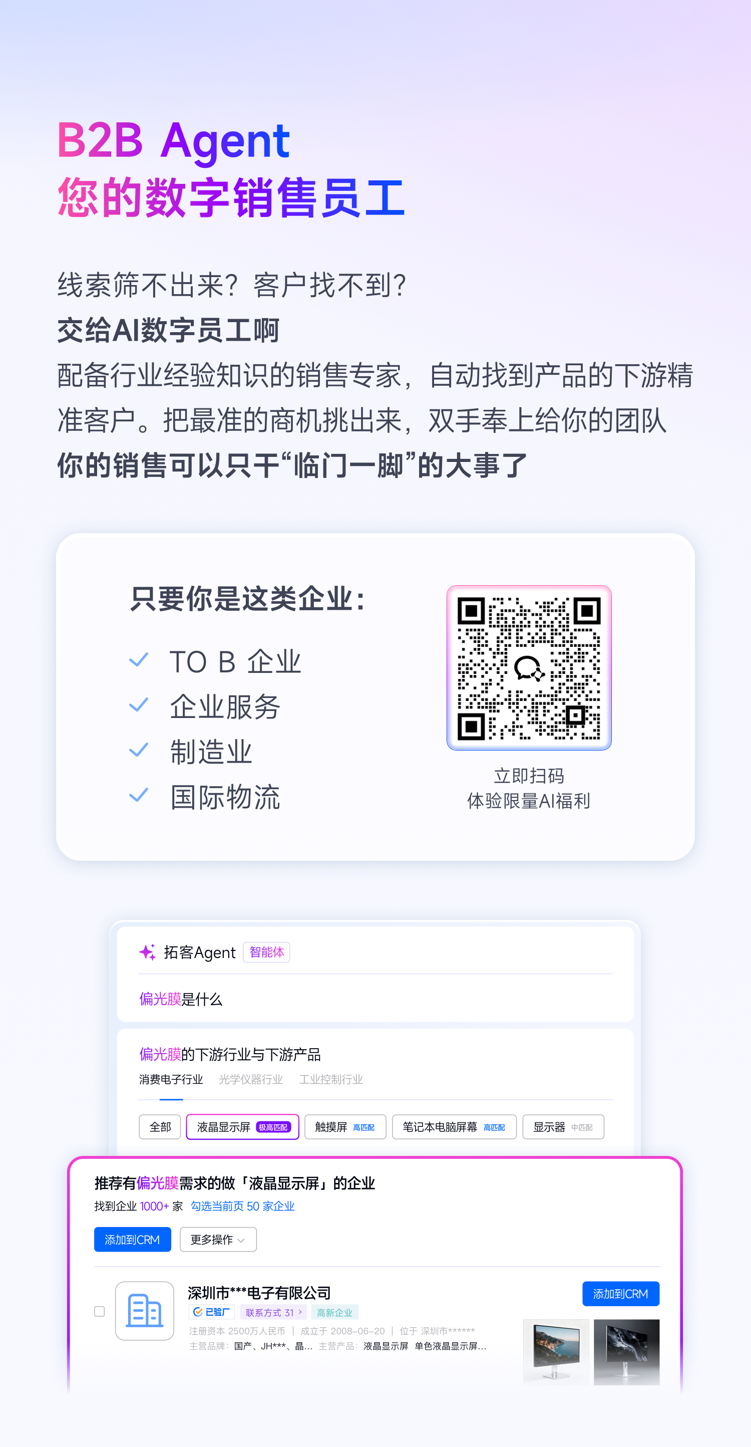 B2B Agent,集成销售、营销、触达与分析能力,全面提升B2B业务的获客效率与转化效果;